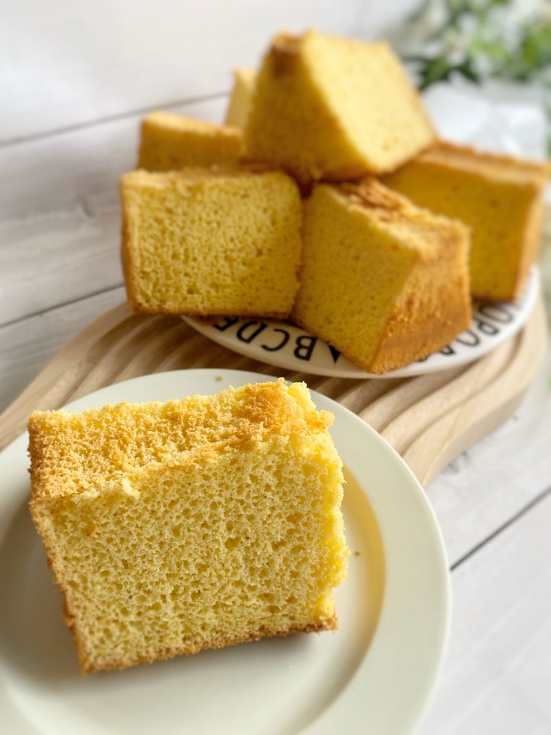 かぼちゃのやさしい甘さで、ふわふわ食感の米粉シフォン。冷凍OKで作り置きにも便利✨